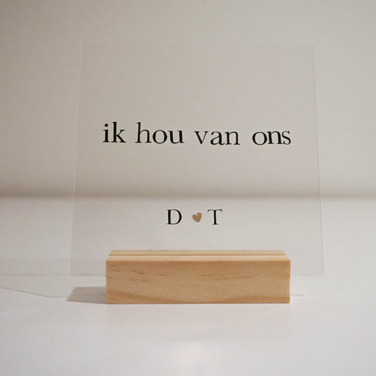 ''Ik hou van ons'' - Gepersonaliseerde acrylplaat 10x10 cm