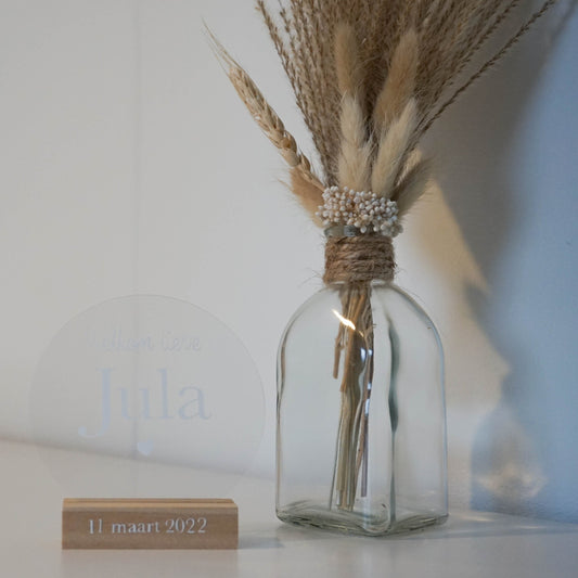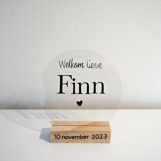 Geboorte cirkel ''Welkom lieve ...'' incl. houder - Transparant wit